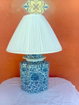 Ralph Lauren Chinoiserie – Super Chic Blue and White com Base em Madeira e Cúpula Incluída
