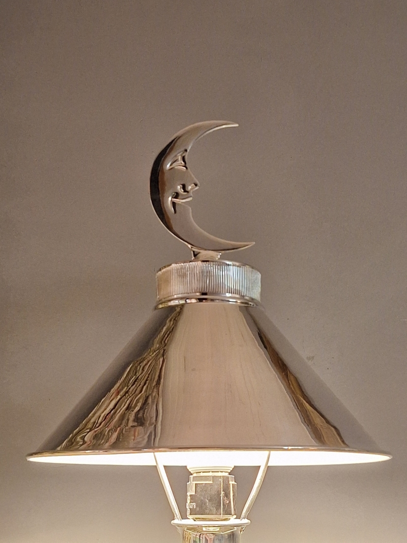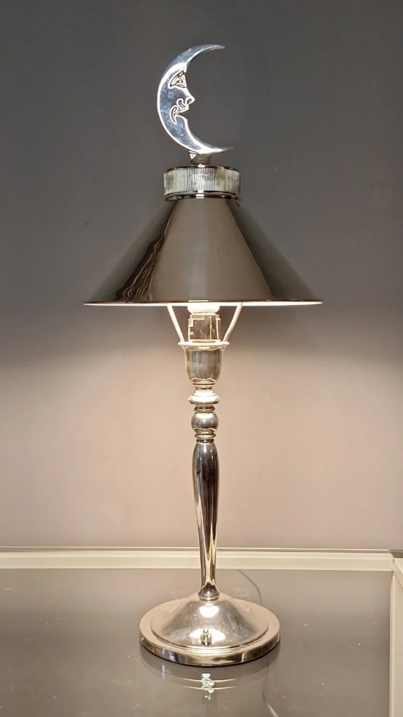 Originalmente de bronze: prateado primeira vez em 1989. Reprateado novamente e restaurado, com fiação elétrica nova.