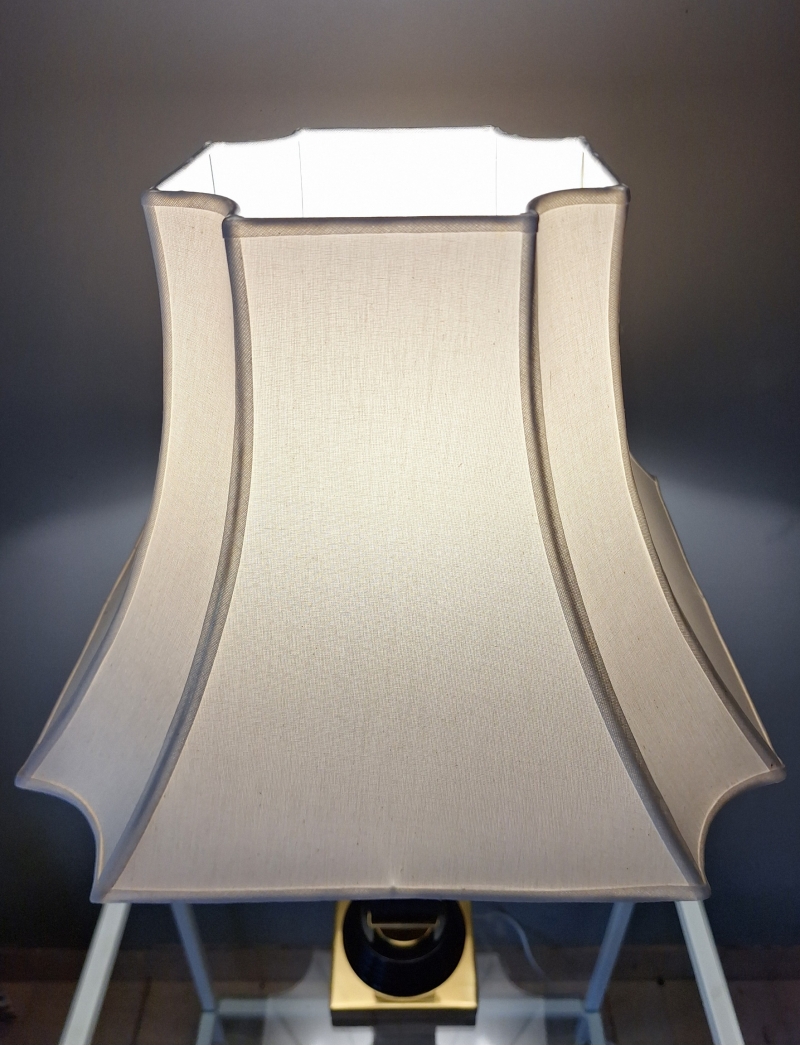Raro exemplo do estilo Hollywood Regency, anos 1940. Peça de design atribuída ao estúdio T. Arquette. Restaurado, com fiação elétrica nova. Proveniência: West Hollywood Props. Dimensões: Altura 55cm, base 15cm x 15cm. Preço: R$ 15.000,00.