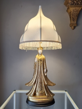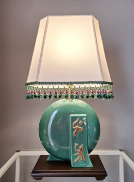 Alto Chinoiserie 1940s – Peça Única Assinada com Base em Ébano e Cúpula Sob Medida