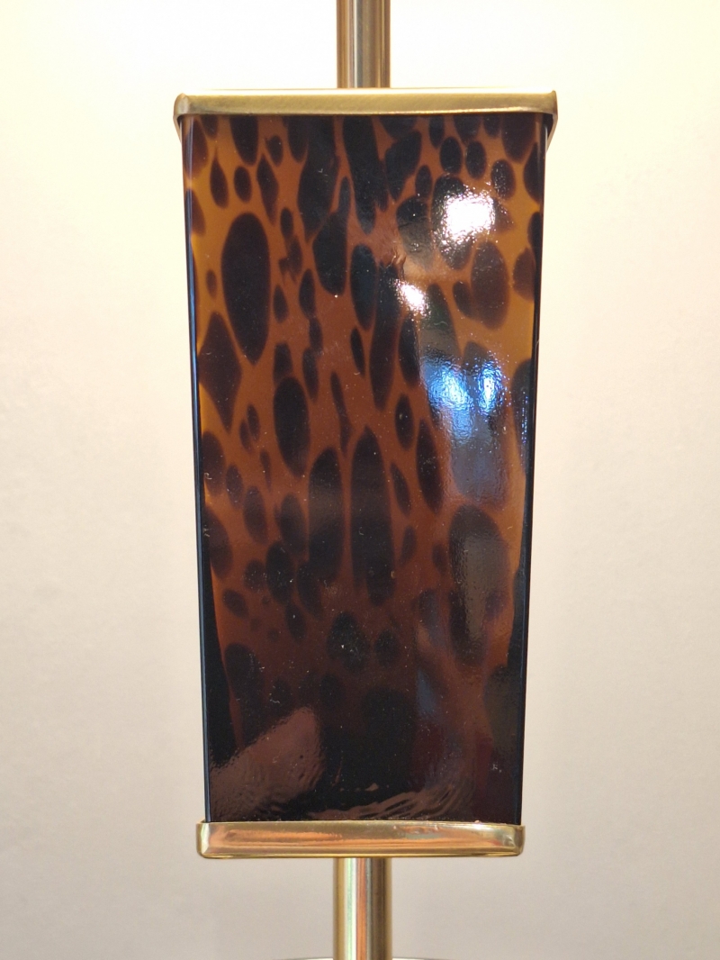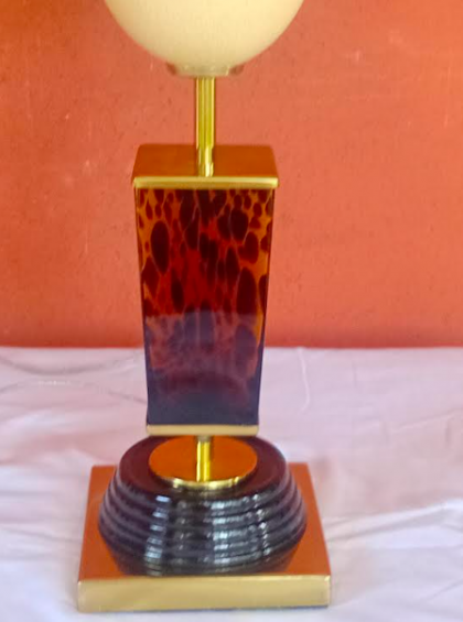 Raro exemplo do estilo Hollywood Regency, anos 1940. Peça de design atribuída ao estúdio T. Arquette. Restaurado, com fiação elétrica nova. Proveniência: West Hollywood Props. Dimensões: Altura 55cm, base 15cm x 15cm. Preço: R$ 15.000,00.