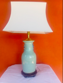Chinoiserie Vintage Celadon 1970s – Par Raro com Bases de Rosewood e Cúpulas Sob Medida
