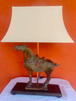 Excepcional Vintage Cavalo Tang Dynasty – Madeira Cânfora, Base Rosewood, Cúpula Sob Medida